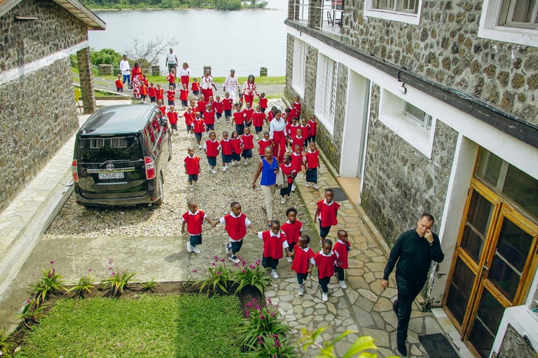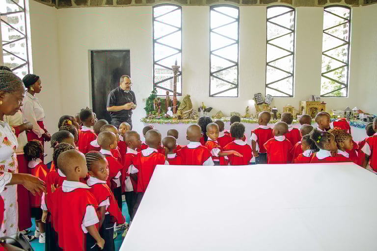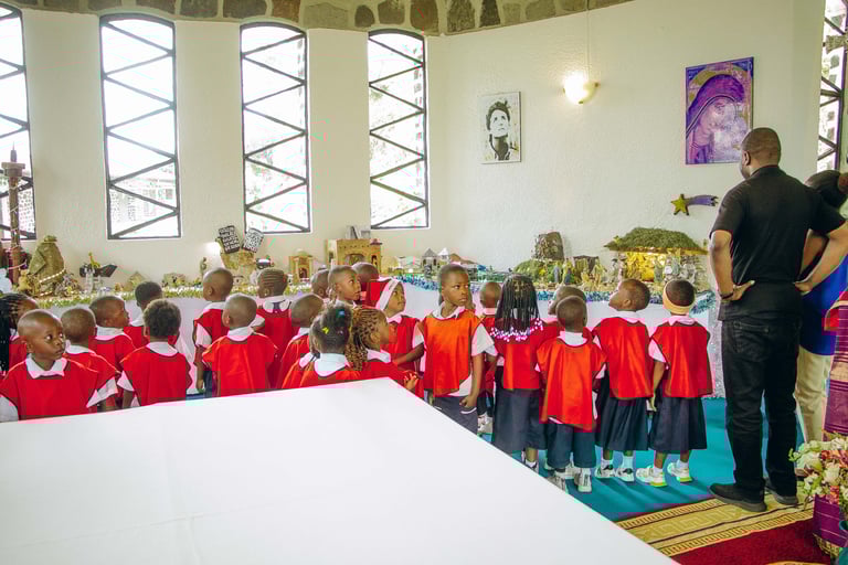 Così ci è venuta l'idea, insieme ai presbiteri che lavorano nelle parrocchie di Goma, di iniziare a far visitare il nostro presepio ai bambini dell'asilo, in modo da trasmettere il messaggio del Natale anche ai più piccoli.